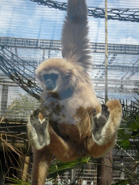 ダイナミックなカバ・目の前でぶら下がりドヤ顔してくれたテナガザルのシロマティーくん。「どや!」