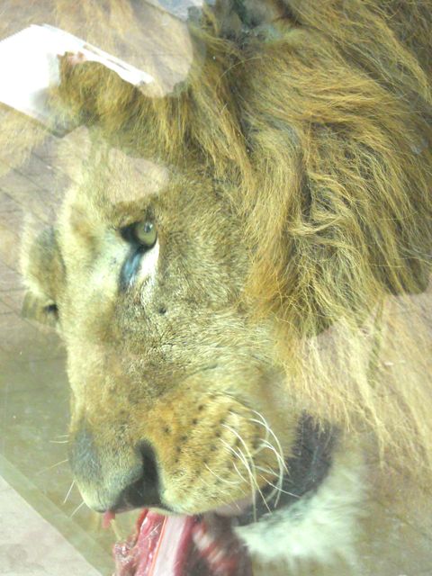 お食事中の雄ライオン。優しそうな目に見えるけど・・