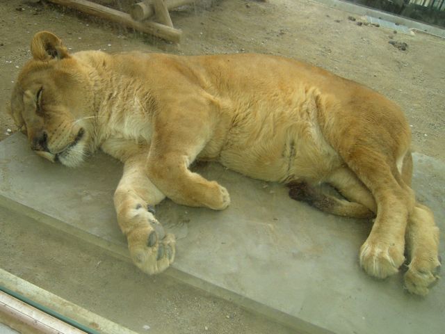 床暖房でくつろぐ雌ライオン。我が家のウィスキーがお風呂の蓋の上でくつろいでいるのと同じです。