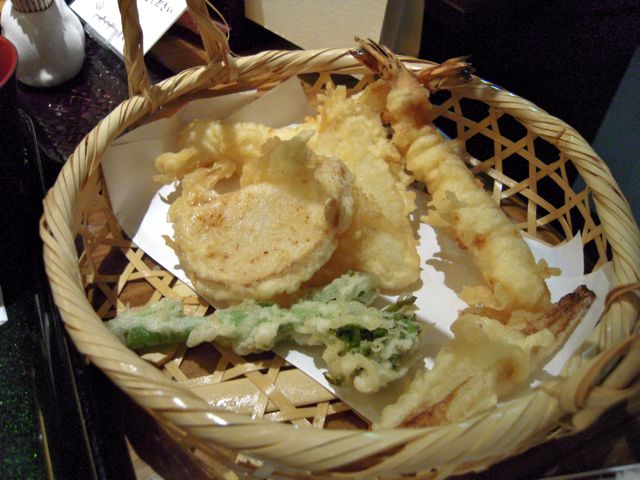 天ぷらもつきます。ナスとレンコンの天ぷらを食べてしまったあとの写真ですが。