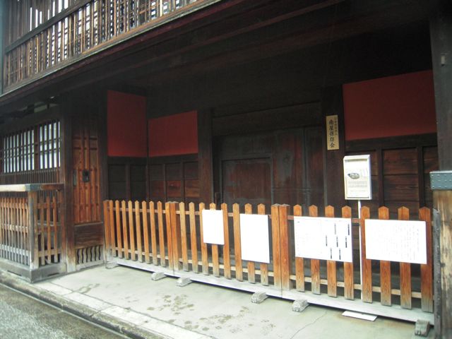 角屋の表です。角屋保存会の札がかかっています。今日のご案内は保存会の会員の方からいただいたもの。