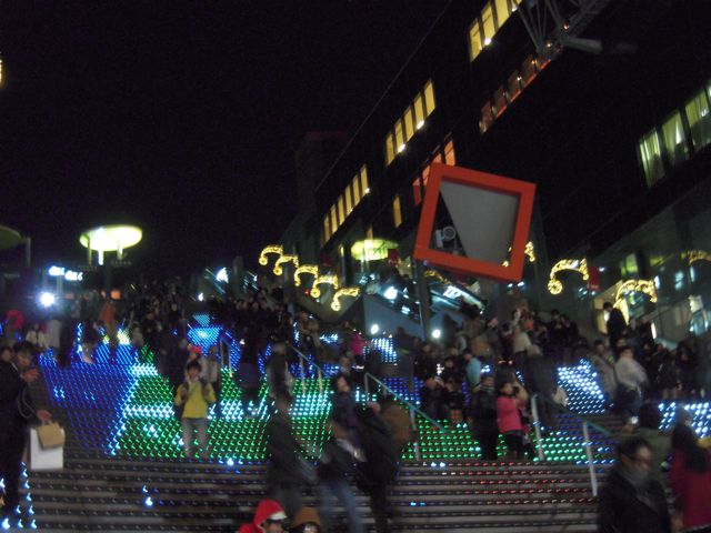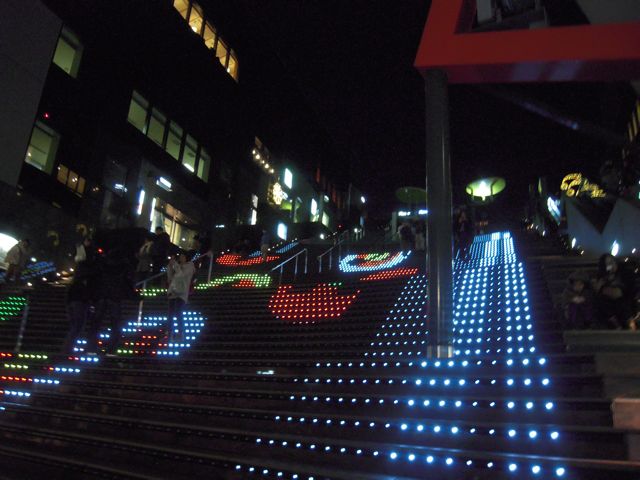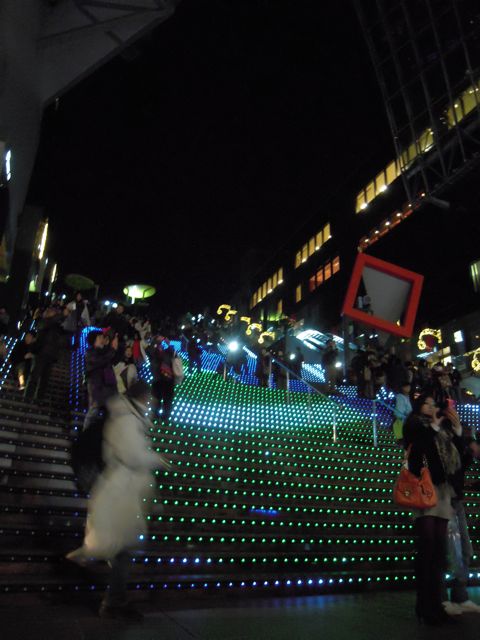 今年のクリスマスは、この階段にLEDが付けられて、階段全体が動く絵で彩られています。