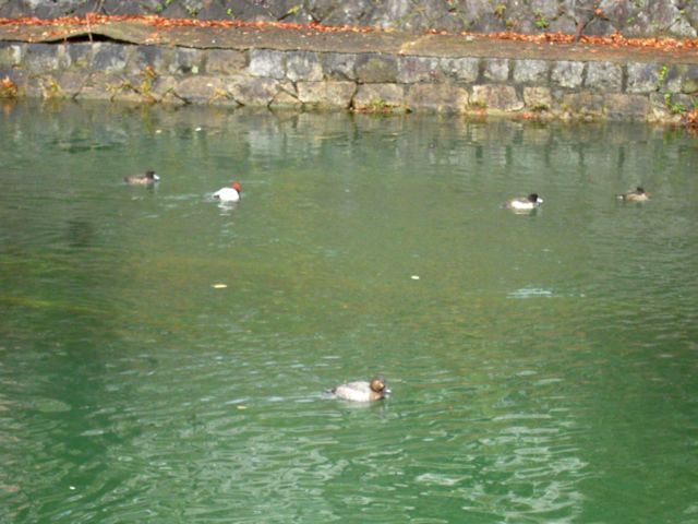 近づいてみるとどうもこれはアオサギみたい。疎水にはマガモやキンクロハジロもたくさん来ているのが見えてきました。