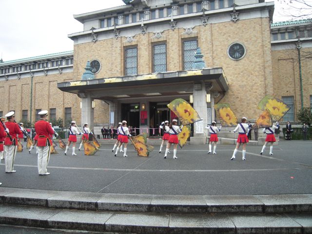 京都市消防隊の吹奏楽とさっきの女の子たちのフラッグダンス。