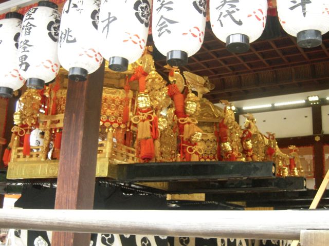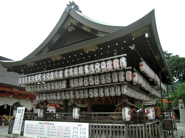 八坂神社の境内には、祇園祭の一連の中で、神社としての行事の主役であるお神輿が3基。