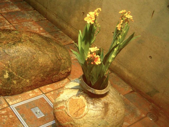 あちこちのお店に、祇園祭の花、ヒオウギが飾られているのもみかけました。