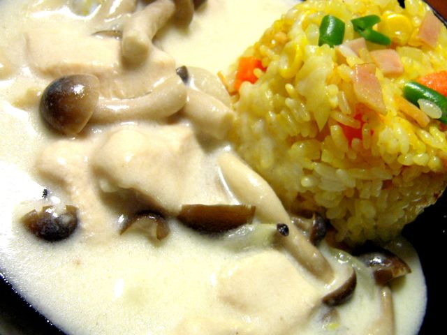 シメジと鶏のクリーム煮 ターメリックバターライス添え