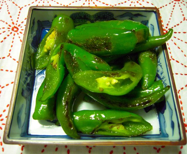 京都・美山のししとうは、オリーブオイルを入れたフライパンで強火で炒め、