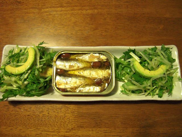 残り少なくなった ”Sardines Pirates” サルディン ピラットからのオイルサーディンの缶詰とサラダ、に決定。