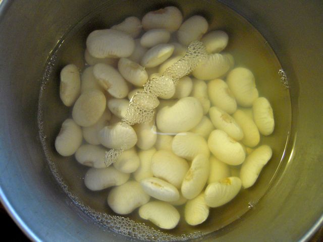 その豆をじっくり茹でます。圧力鍋だと早いです。