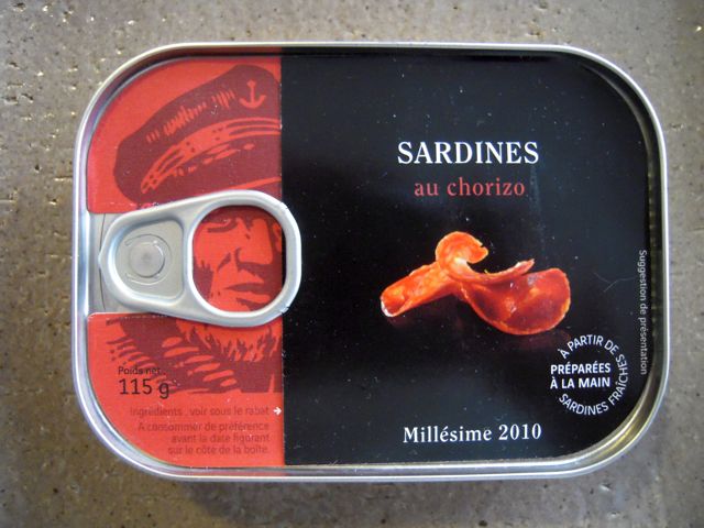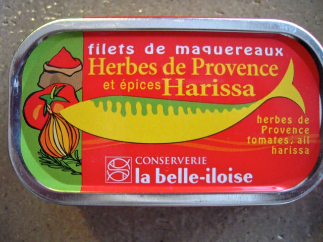 Sardines Pirates サルディンピラット からの缶詰めのうちの2つ、la belle-iloise ラ・ベル・イロワーズのサバの缶詰め、エルブドプロヴァンスとアリッサ風味。そしてCapitaine Cook キャプテンクックのチョリソー入りサーディン。