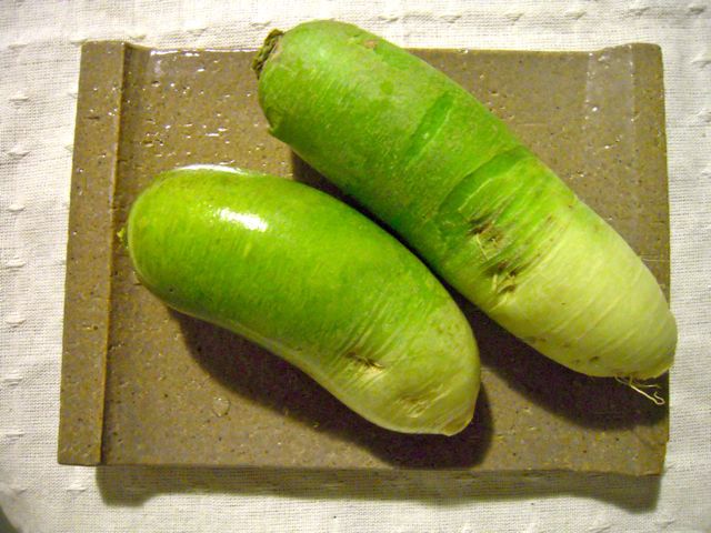 普通の青首大根のほかに、赤い大根、そして湖北の道の駅で買ってきた『ビタミン大根』という緑色の大根。