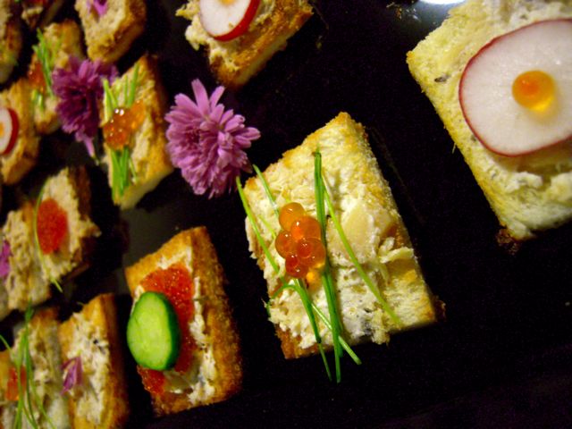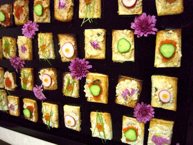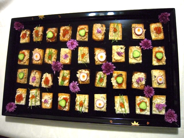 カナッペのあいだにも、食用の菊を飾って出来上がり。