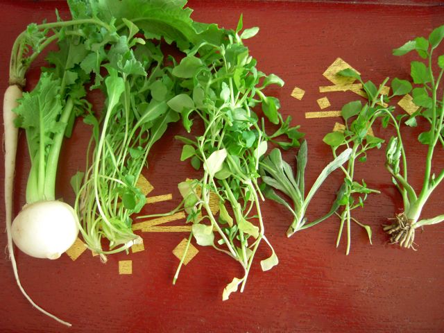 その上に、とびっこ、いくら、ラディッシュ、キュウリ、芽ねぎ、食用の菊で飾っていきました。