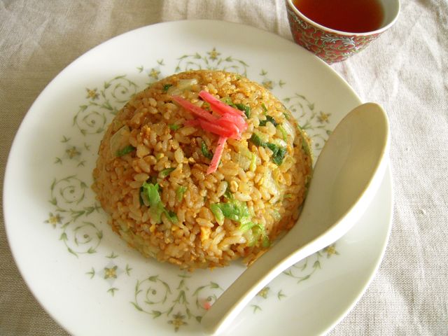色の濃い、でもしょっぱくなくて香ばしい、ラーメン屋さんのチャーハン。