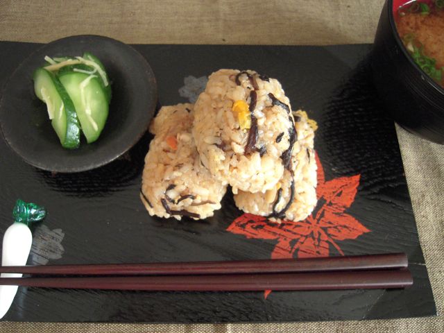 翌日は残ったおこわをおにぎりに。