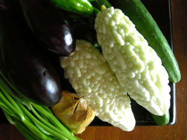 この日の夕食からは3日続けて白ゴーヤを使う料理の試み。