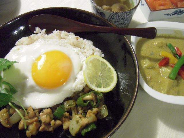 まず、ガパオごはん。タイ風バジル炒め。