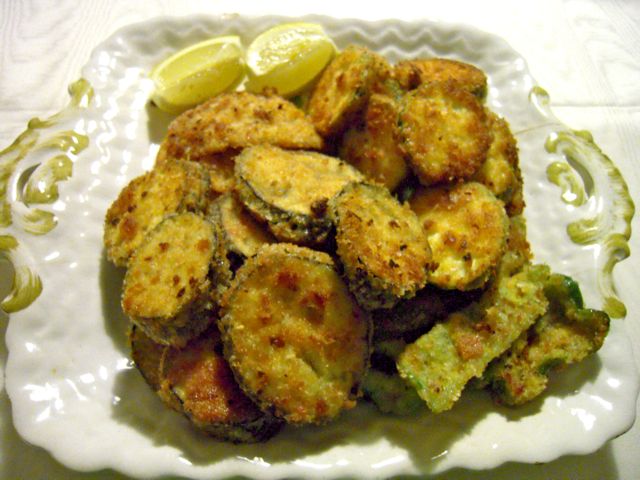 ズッキーニ、ナス、ピーマン、をフライにして、レモンを絞って食べましょう。ボンレスハムもフライにしてしまいました。