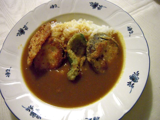 さらさらの具のないカレーに熱々の野菜のフライ、という組み合わせを以前あるカフェで食べたらとても気に入ったのです。