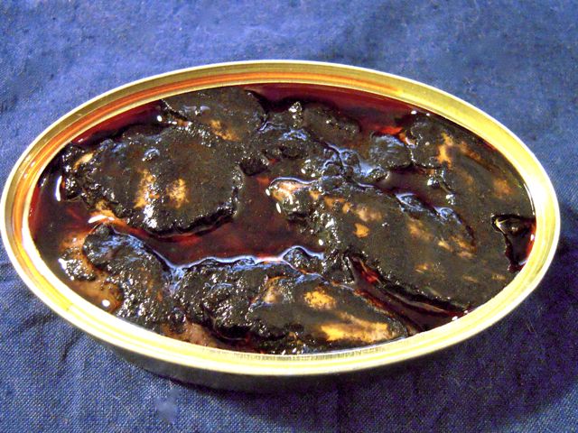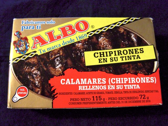 缶詰めのイカは柔らかくてもっちりしていて、イカ墨の風味もよくて美味しかったです。詰め物はイカちゃん自身の足でした。
