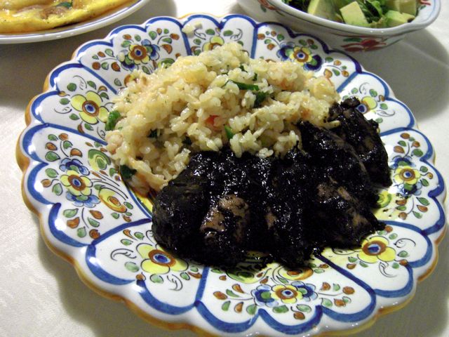 英語では STUFFED SQUIDS IN THEIR OWN INK と書いてある。自身のインクに入っている詰め物したイカ。イカ墨のことですね。