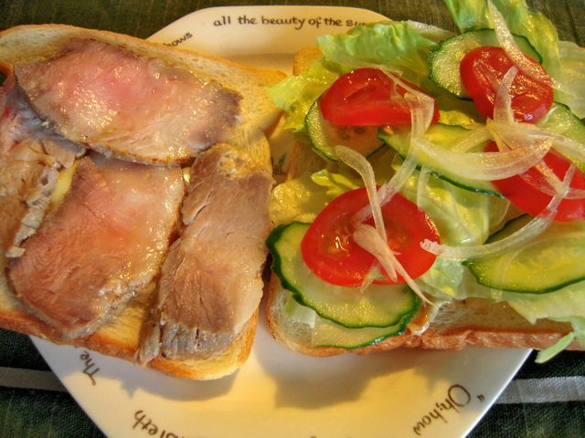 残った塩麹焼き豚は、翌日サンドイッチにしました。