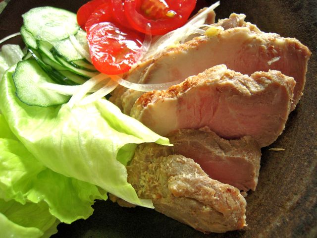 友人宅の持ち寄りパーティーのとき、お招き宅の主である友人が作ってくれていた塩麹焼き豚がとてもおいしかったので、わたしも作ってみました。