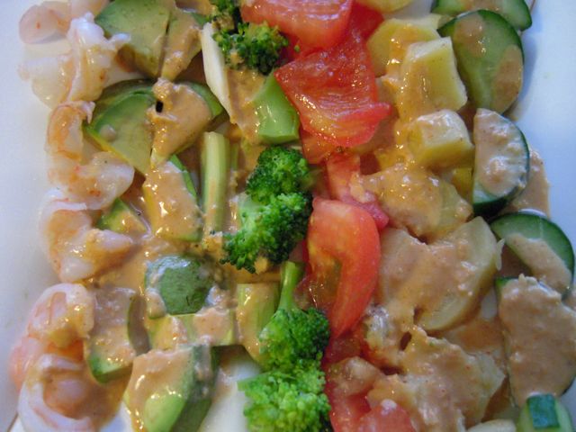 コブサラダ(ボイルしたエビ、アボカド、セロリ、ブロッコリー、トマト、ポテト、キュウリ)