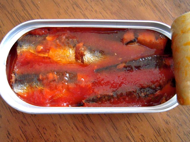 ポルトガルの缶詰めメーカーConserveira de Lisboaの、もうひとつ猫の絵のついたレーベル、MINORの缶詰めを開けてみると、これはしっかりトマトのサーディンでした。