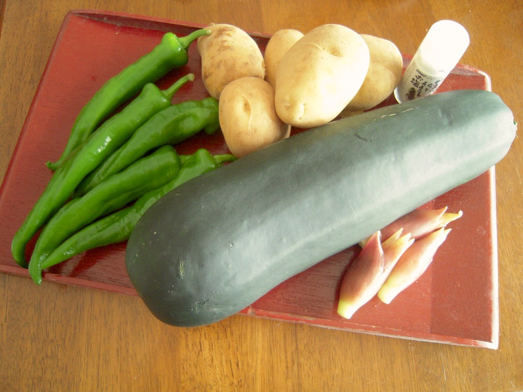 空芯菜炒めの代わりには、小松菜と少しのモロヘイヤ。これはばっちり。空芯菜の葉っぱの部分のぬめった感じがモロヘイヤで出ました。