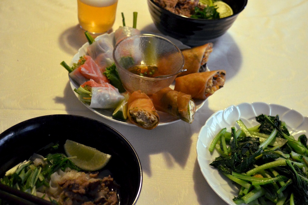 ベトナムからのフォーをいただきましょうと、ベトナム料理(もどき)の夕食にしてみました。
