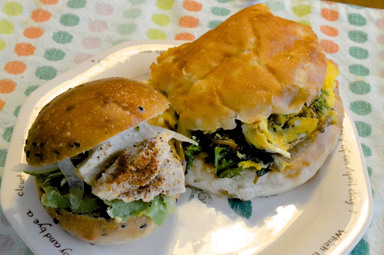もう一種類のサンドイッチ。こちらもチェリッシュ製の玄米バンズです。