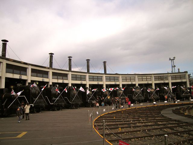 そして、黒く鈍く光る大きな鉄の塊のような機関車がズラリ。