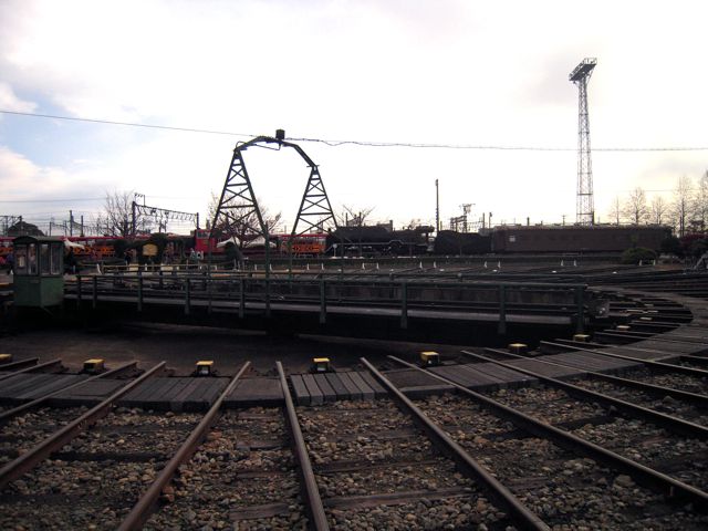 扇形車庫に収容する時に蒸気機関車が向きを変えるための『転車台』。