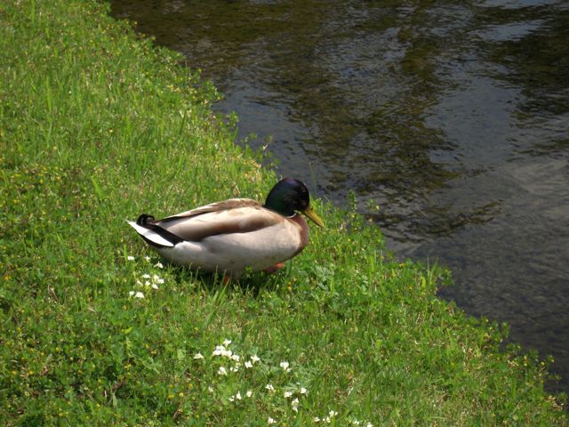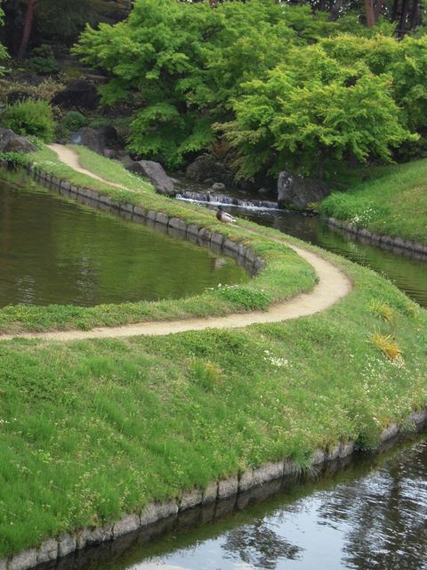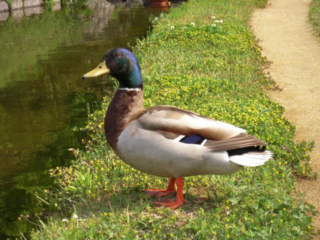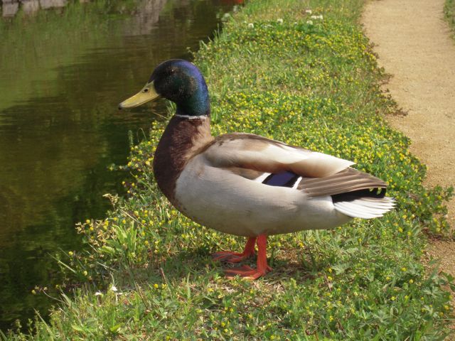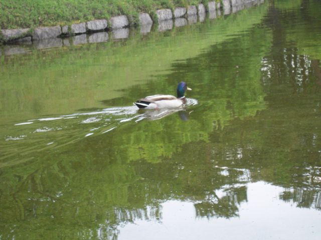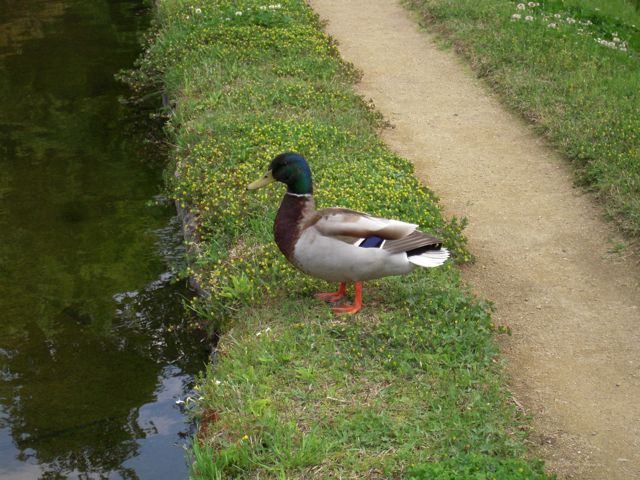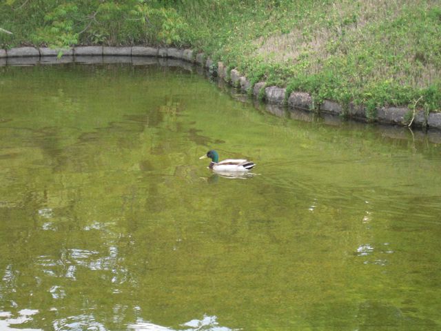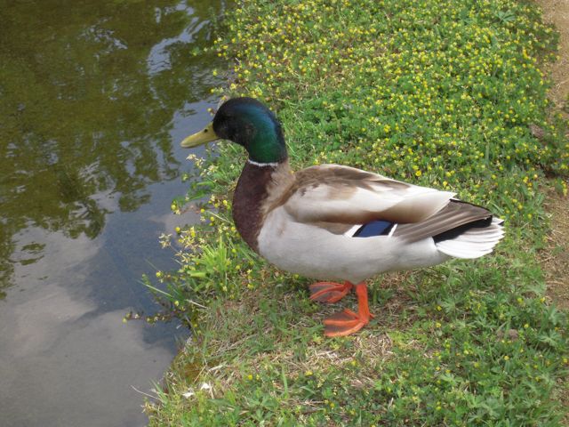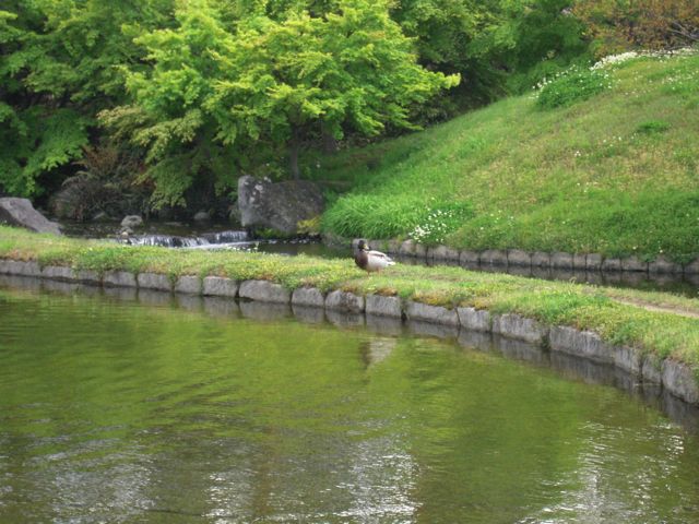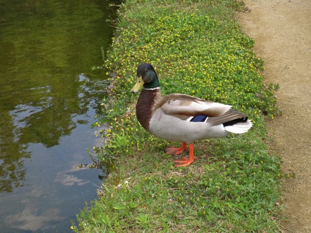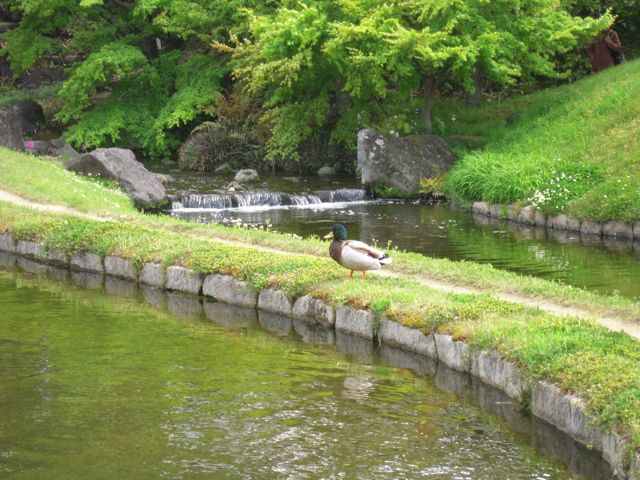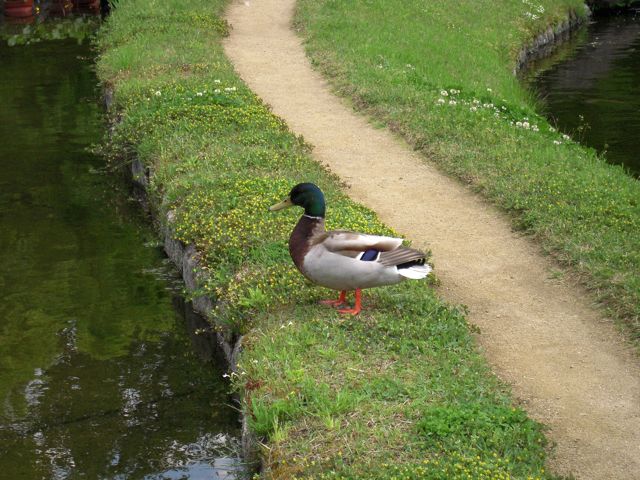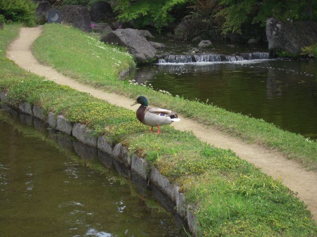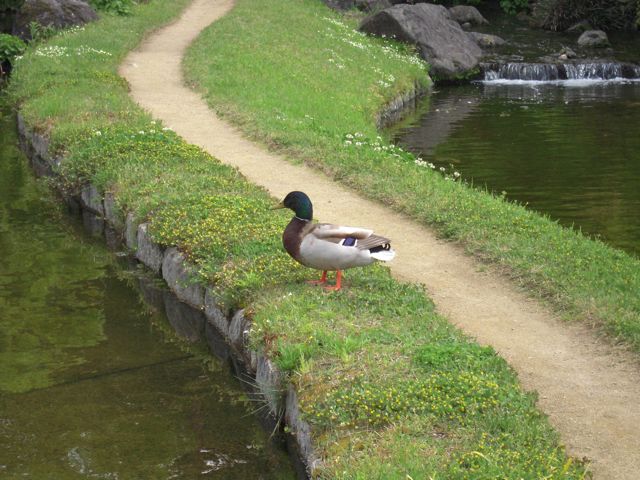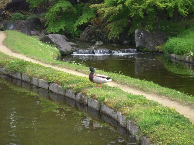 そのあと、カモは180度向きを変え、後ろの池によちよち歩いて行き、水に入ってスイスイ泳いで行ってしまいました。