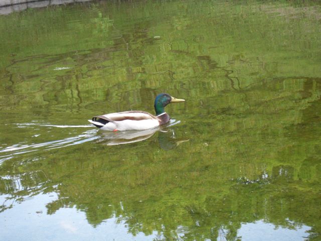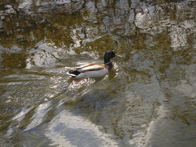 カモはスイスイとわたしの近くまで泳いでやってきました。