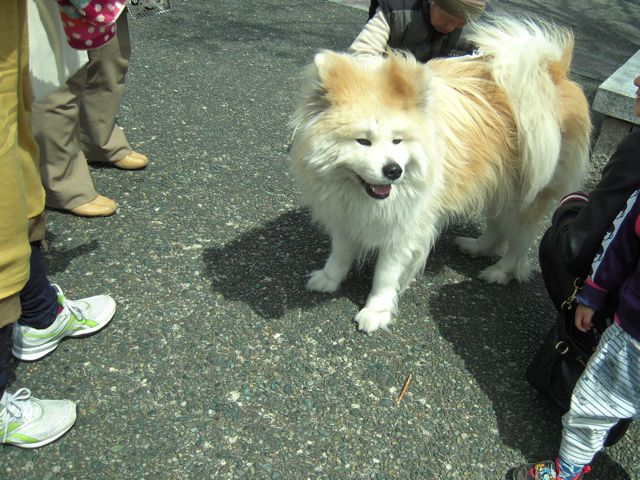 帰ってから、ネットで調べてみました。サモエドは白いのが特徴らしい。その点で既に違うらしいのですが、それでも秋田犬の長毛種はサモエドと間違われることがよくあるらしいということを知りました。