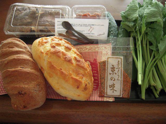 ほかにはこんなの。信州の野菜やきのこ、豆、穀類を扱っていらっしゃる「アイダナ」では野沢菜の間引き菜とみずみずしいキュウリ。