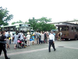 一時走っていたチンチンバスも来ていました。京都市バスだけでなく、近鉄バスや京阪京都交通バス、阪急バス、京都バス、JRバスなど各社のバスが並びます。