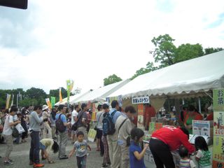 飲食のテントには京都の地ビールのお店もたくさん。梅小路公園名物のチンチン電車も今日は大盛況で長蛇の列。