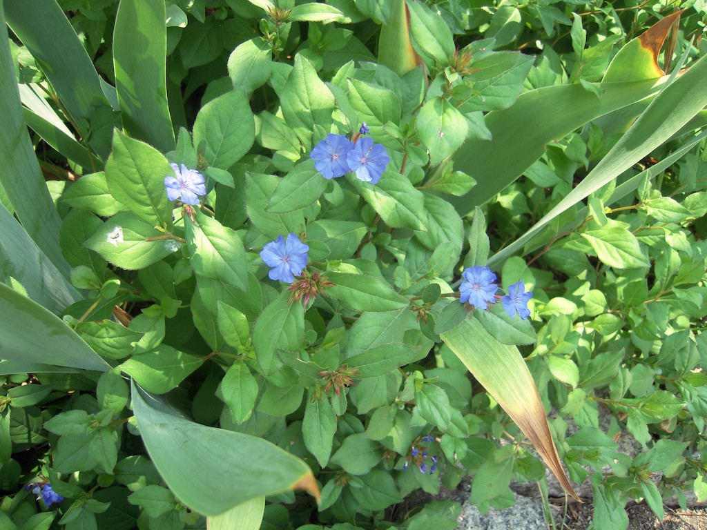 ツルニチニチソウより少し小ぶり。ニチニチというのが語呂が悪いようで覚えにくいと思っていましたが、初夏から秋まで毎日咲くので蔓日々草。