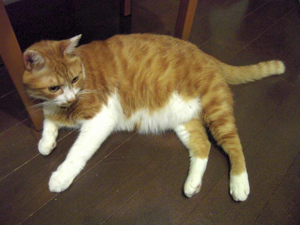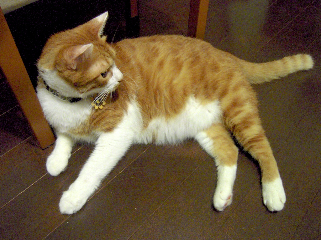 おくつろぎ中のウィスキー。 カメラを向けていることに気づくと本当は用事もないのに『お、なんだ?』とあちらを気にしている風を装います。 ネコは緊張しやすいのです。ウィスキーは特に緊張するタイプ。普段はおっとりしていますが、ジーっと見つめられることが嫌い。 イヌは『見て見て〜』とやってくるのに、ネコは違いますね。