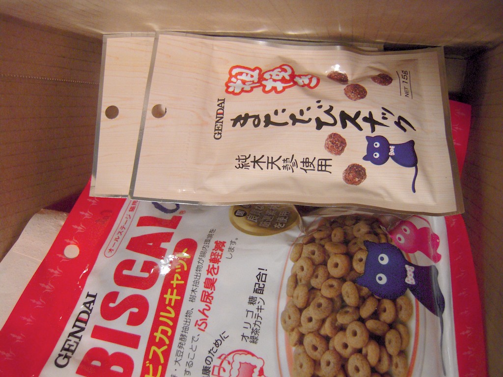 それと、マタタビではないけれどこの「ビスカルキャット」というおやつも好きみたいです。オリゴ糖入り。