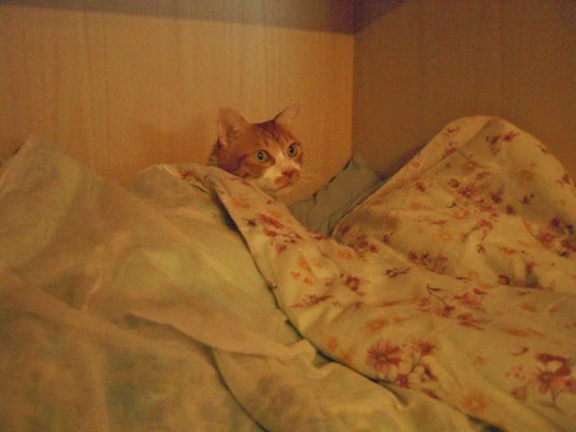 夕方見たら、自分で布団の中に潜り込んで、顔だけだして寝ていました。