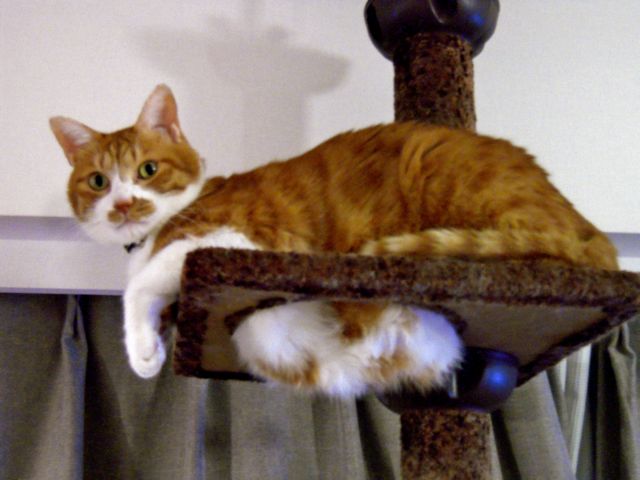 夜の10時から11時の頃、よくキャットタワーの上で落ち着いています。