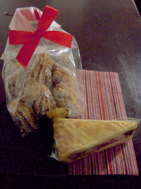 「カトリーヌ」のご自慢、ここへ来ればそれを食べなければ、というヘーゼルナッツジャムサンドクッキーとクルミのタルトを買いました。