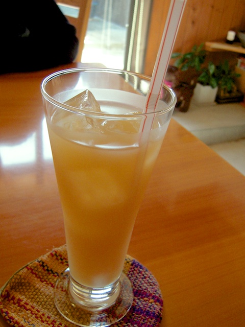 古い町並みに溶け込んでいたコーヒーのお店「大川珈琲屋」でグレープフルーツジュース。