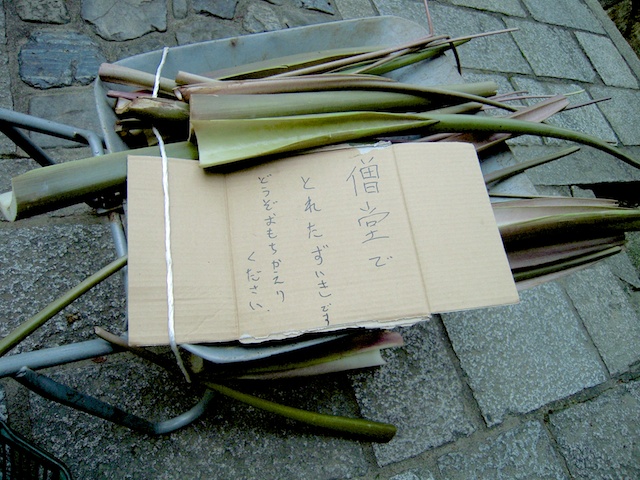 上には「僧堂でとれたずいきです。どうぞおもちかえりください。」とあります。