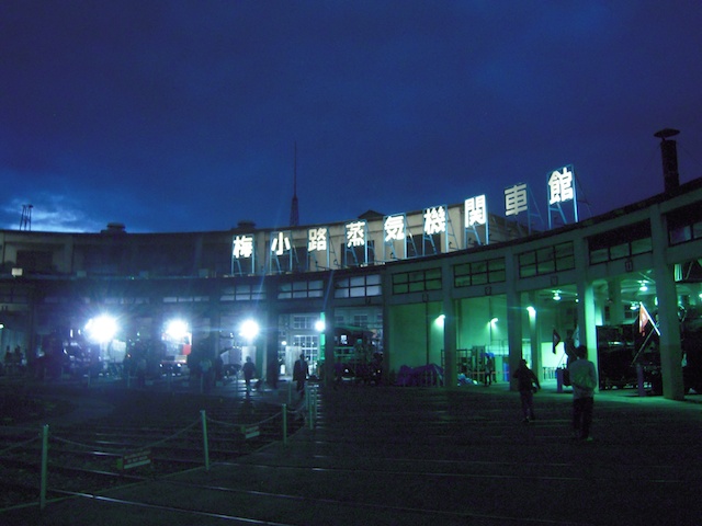 梅小路蒸気機関車館ではささやかに、12日と今日、蒸気機関車のライトアップ展示が行われました。(昨日は台風のため中止)